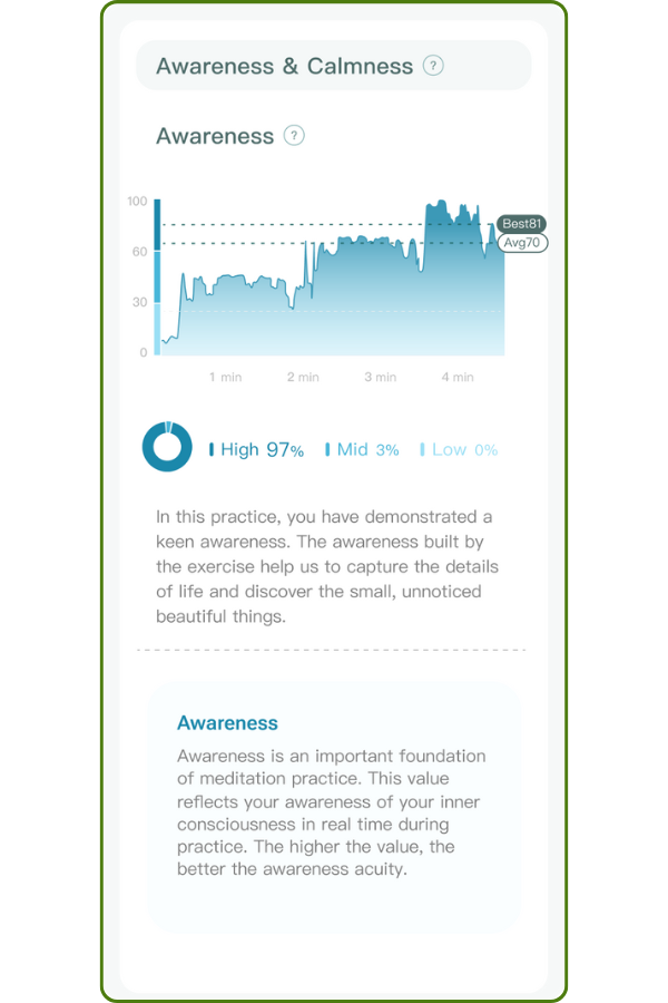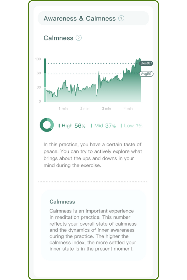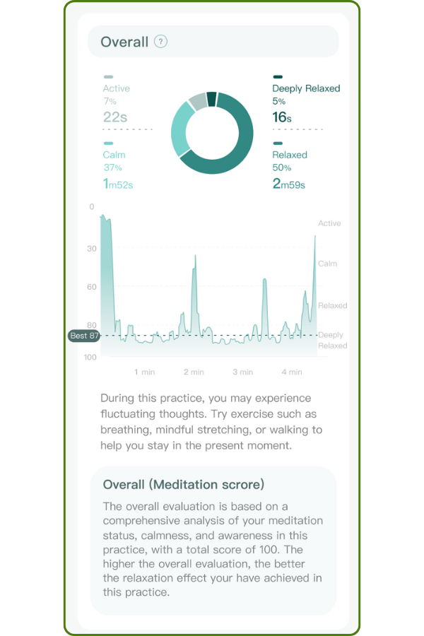 - Une interprétation avancée de votre état mental et physique pendant la méditation.