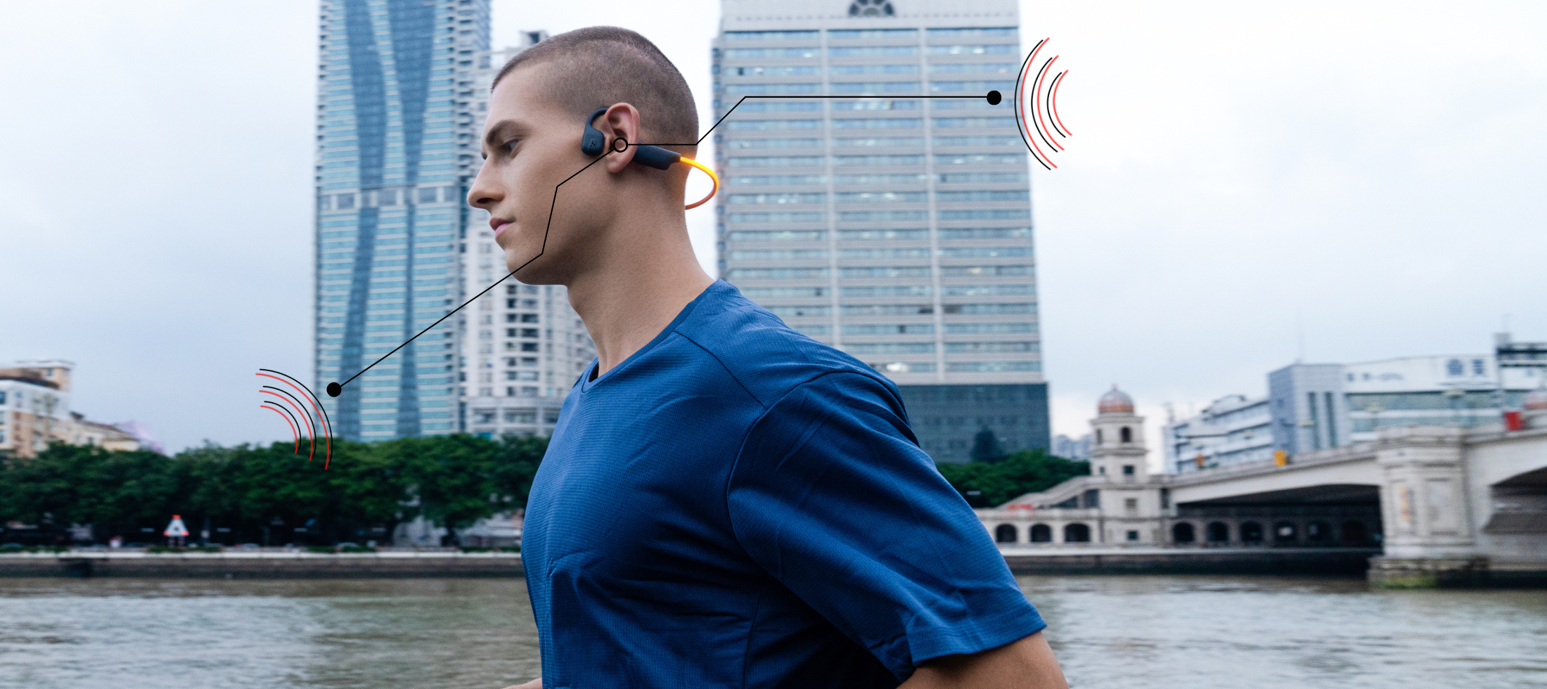 Le casque audio Bluetooth pour le sport qui allie sécurité, confort et performance grâce à la technologie Bluetooth et la conduction osseuse.